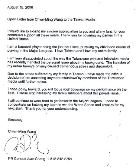 為什麼當我們看到王建民給台灣媒體的那封公開信,